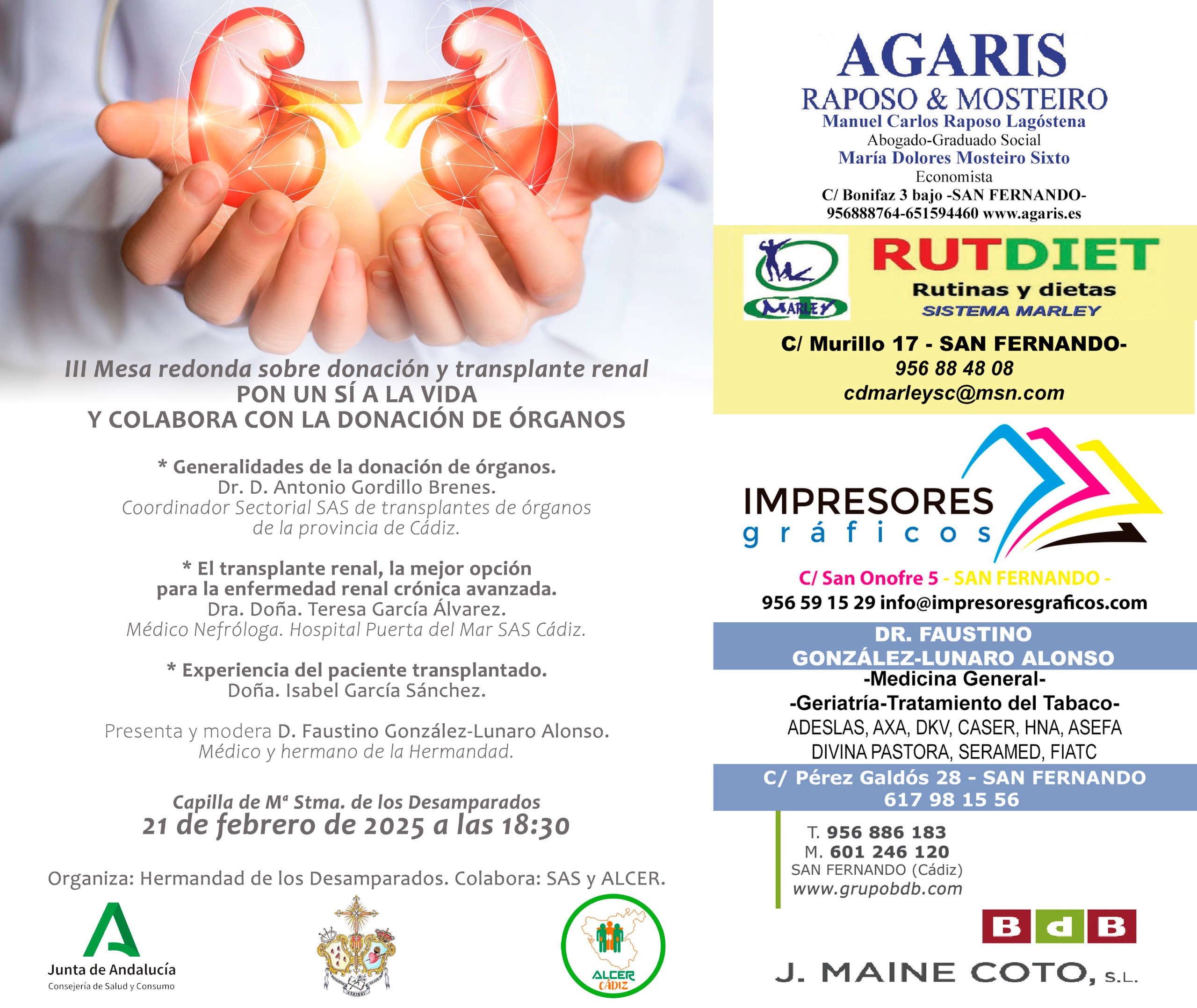 La Hermandad de Desamparados ha programado la III Mesa redonda sobre donación y trasplante renal que bajo el título “PON