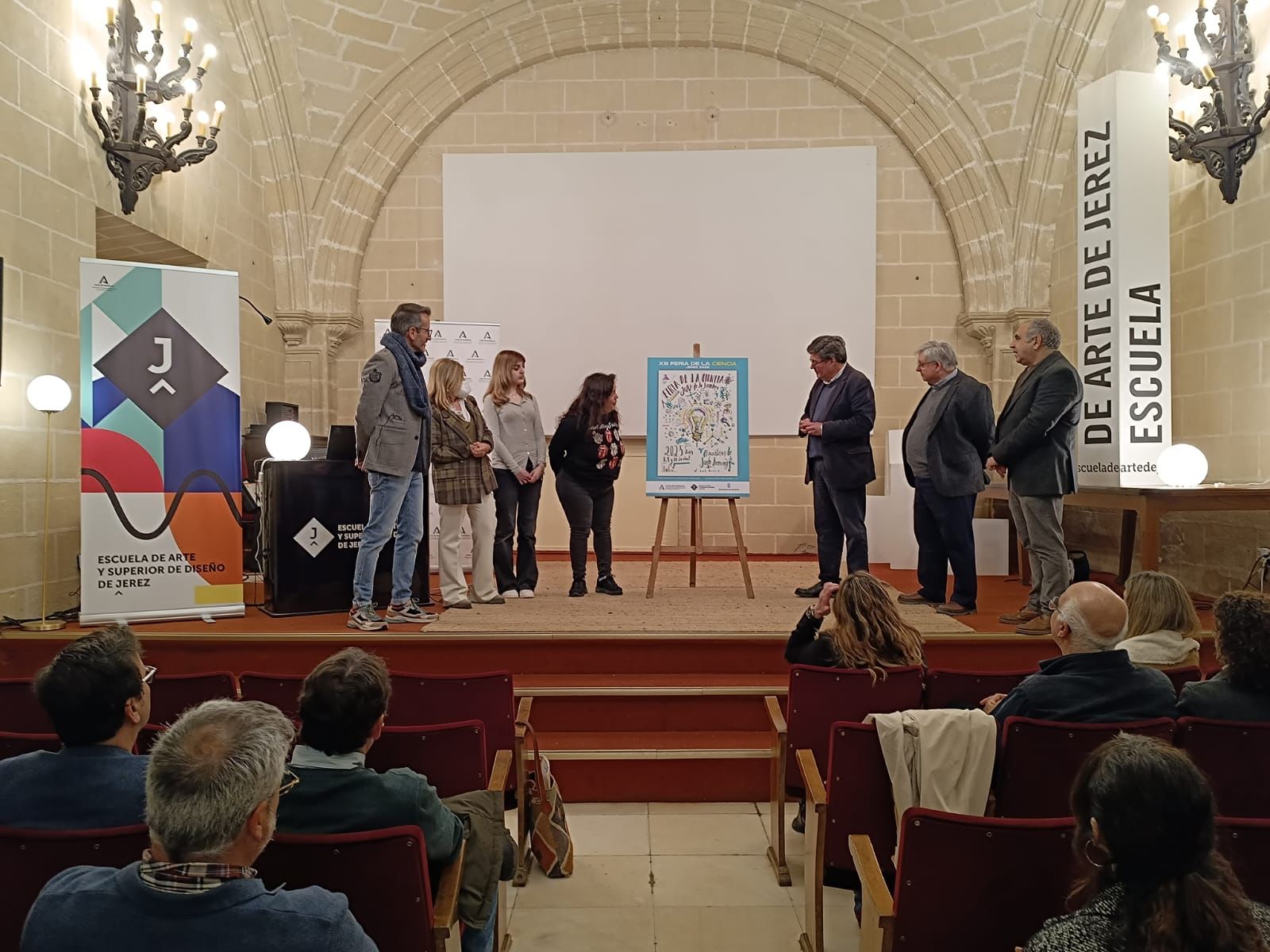 La delegada territorial de Desarrollo Educativo y FP descubre el cartel ganador que será la imagen de la XIII Feria de la Ciencia de Jerez