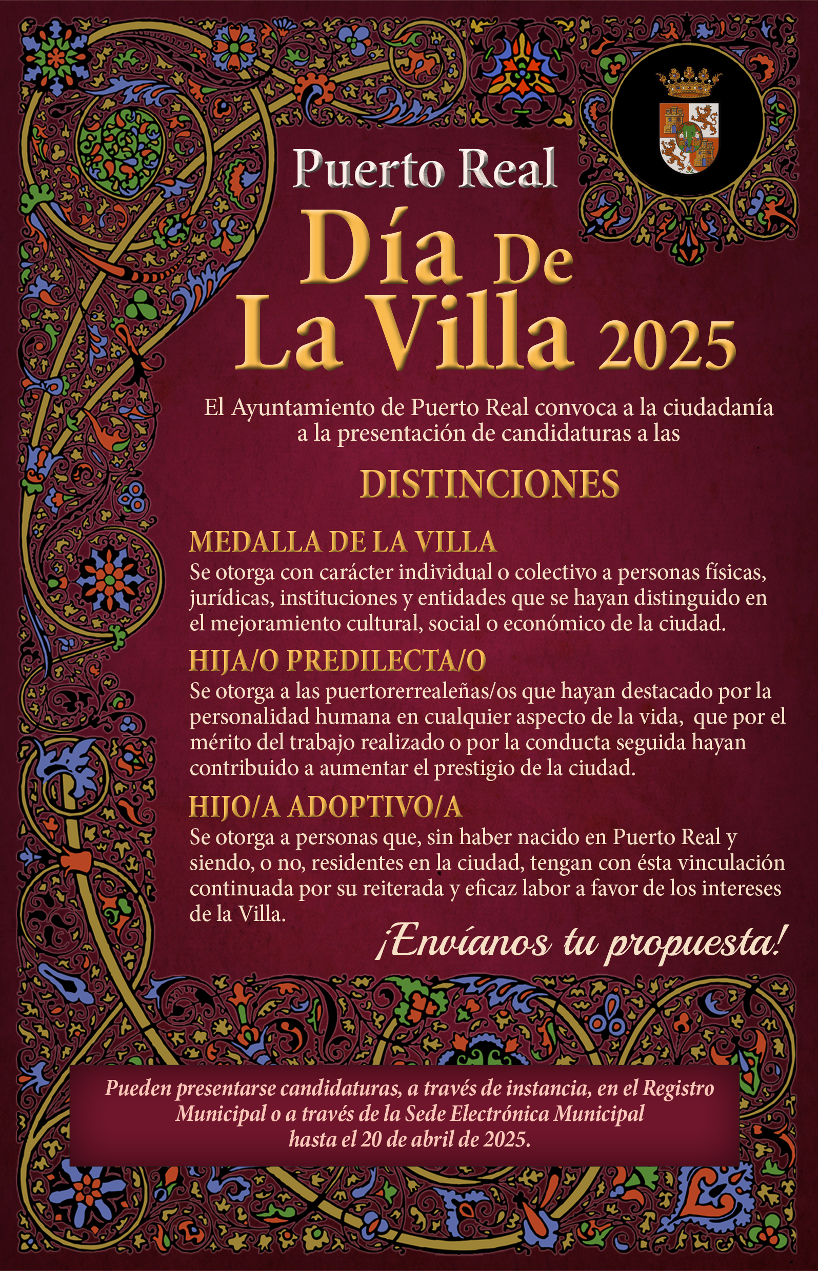 El Ayuntamiento anima a la ciudadanía a presentar propuestas para las distinciones del Día de la Villa 2025