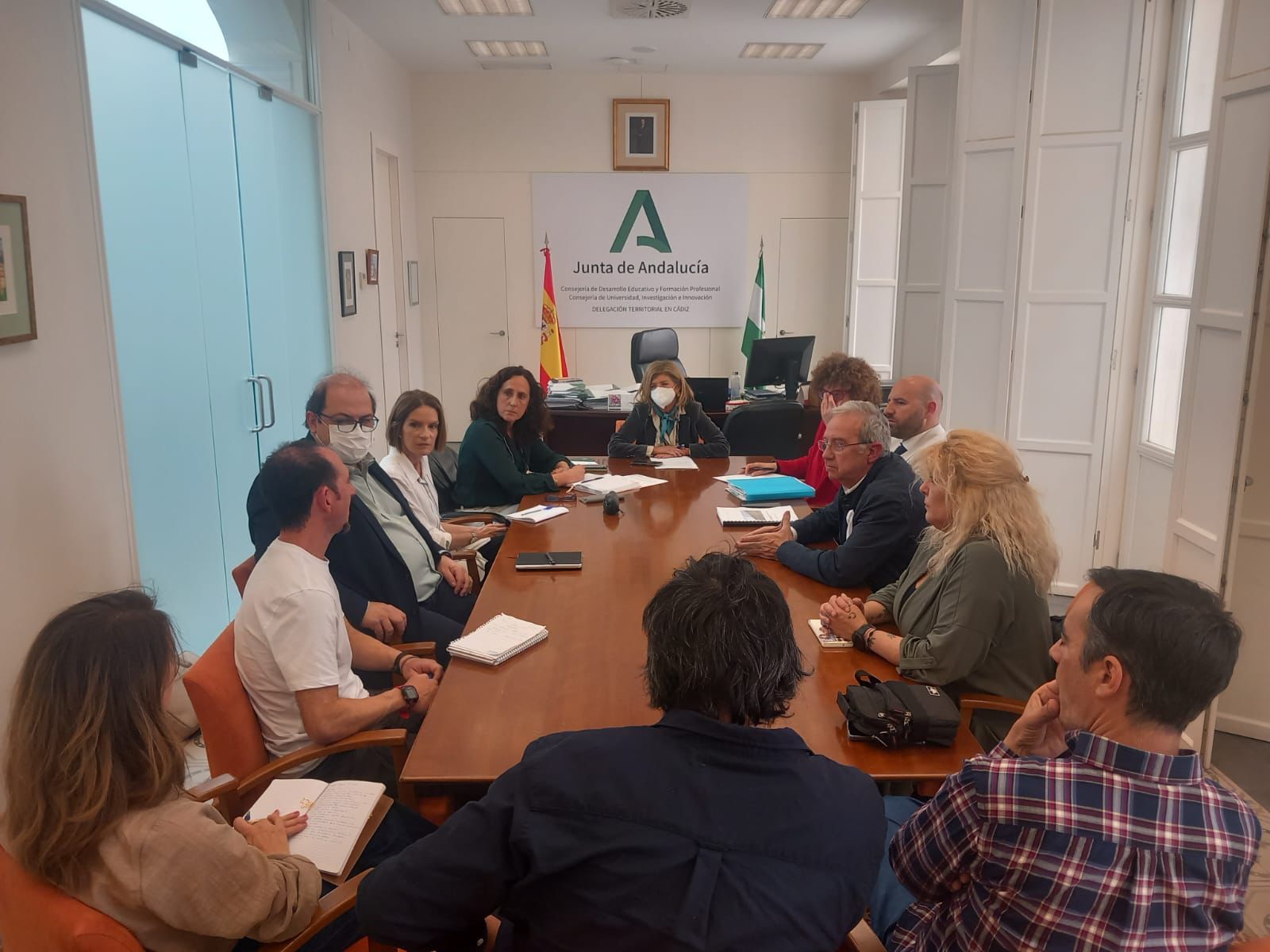La delegada territorial Isabel Paredes se ha reunido con la concejala Pepa Pacheco y la comunidad educativa del centro para