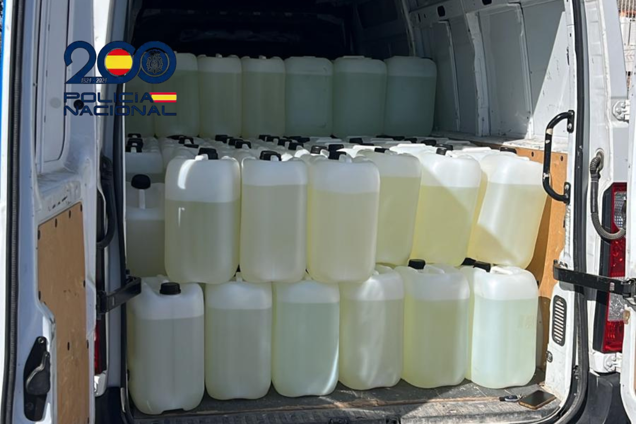 En la inspección del vehículo, los agentes localizaron en su interior un total de 75 garrafas de 25 litros cada