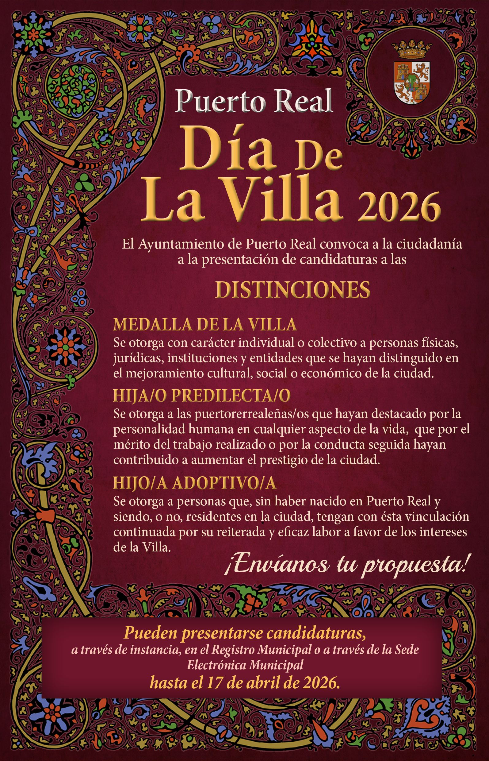 La ciudadanía y los colectivos locales tienen hasta el próximo 17 de abril para proponer a los homenajeados del año.