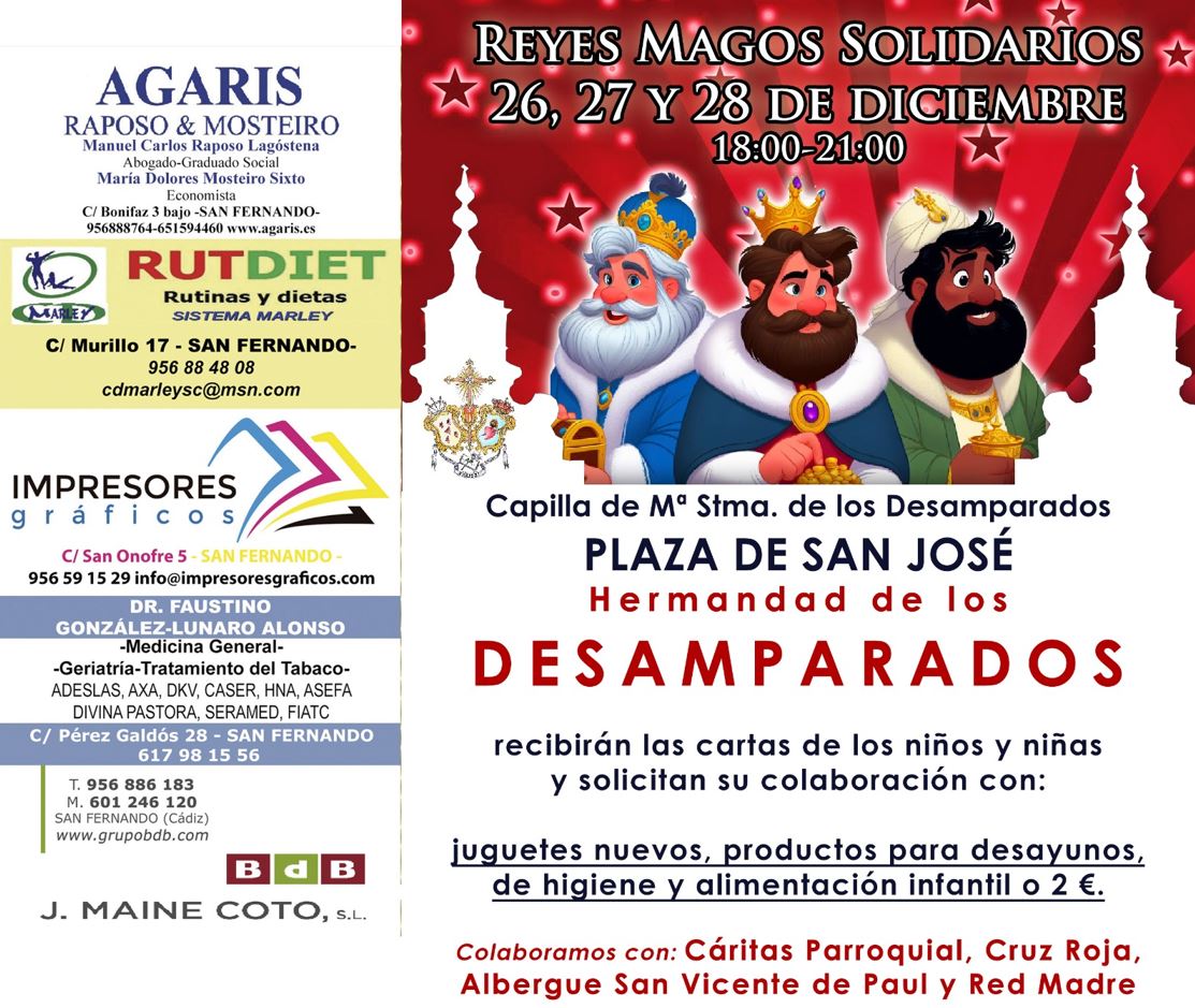 La Hermandad de los Desamparados celebrará los días 26, 27 y 28 de diciembre, de 18:00 a 21:00 horas, una