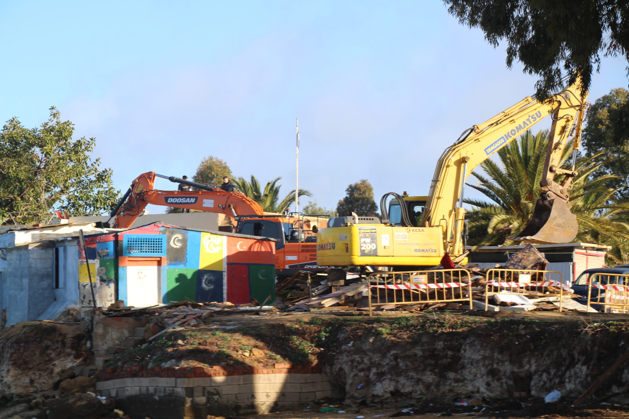 Las máquinas han llegado a primeras horas de la mañana para comenzar conn los derribos. La zona ha estado custodiada