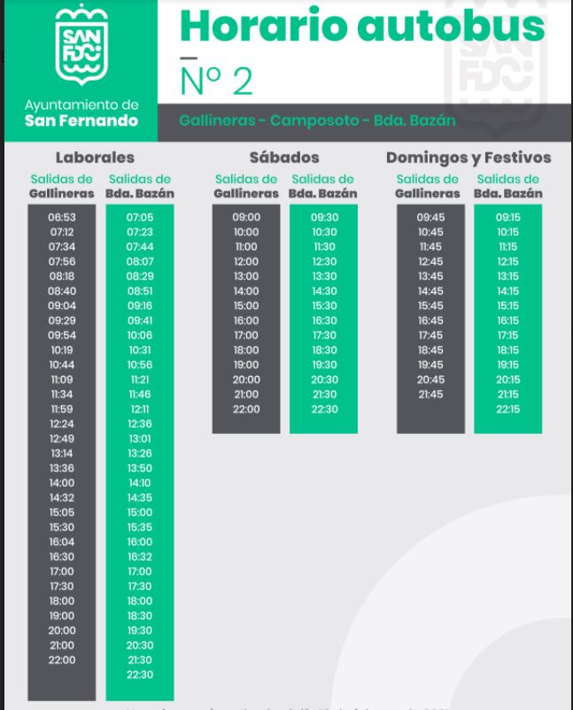 De esta manera, el horario de lunes a viernes se mantendrá igual con 3 autobuses en el turno de mañana, se reducirá a dos a media tarde hasta las 18.00 horas y será a partir de esta hora cuando el número de autobús disminuya a uno hasta la finalización del servicio. Esta reducción se realizará ambas líneas a partir de las 15.00 horas. Este nuevo horario también afectará al turno de mañana del sábado donde habrá un autobús menos en el servicio y el domingo se mantendrá como está actualmente. En definitiva, los días laborables se reducirá el número de expediciones en un 9%, los sábados un 42% y el domingo se mantendrá el 100%.