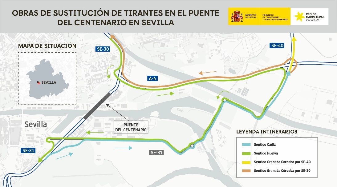 El puente se ubica entre los kilómetros 10 y 12 de la carretera SE-30.