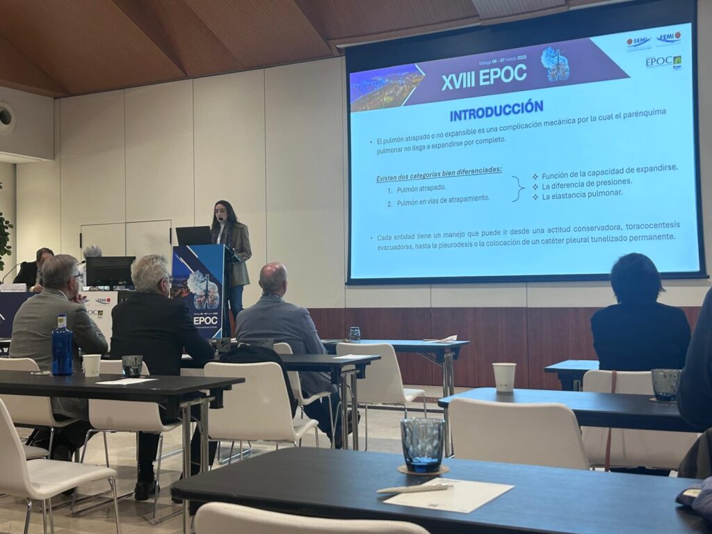 Su trabajo ‘Manejo de un paciente EPOC con disnea y pulmón atrapado tras intervención quirúrgica’ fue seleccionado como finalista y, tras su defensa oral, resultó ganador de la reunión. El estudio se realizó bajo la supervisión de Álvaro Serrano Cabeza, adjunto referente de Neumología.